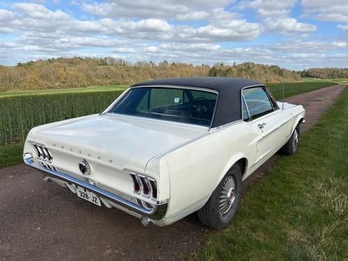 Sympathique Mustang coupé de 67 équipée du V8 289 2V. Direction assistée, boite automatique, console centrale, vitres teintées, simple ligne d'échappement d'origine. Configuration Wimbledon White / noir d'origine. Très saine, peinture très ancienne avec défauts et bosses. Zéro mastic. Carburateur, amortisseurs, cylindres de roues et 4 pneus neufs. Révisée.